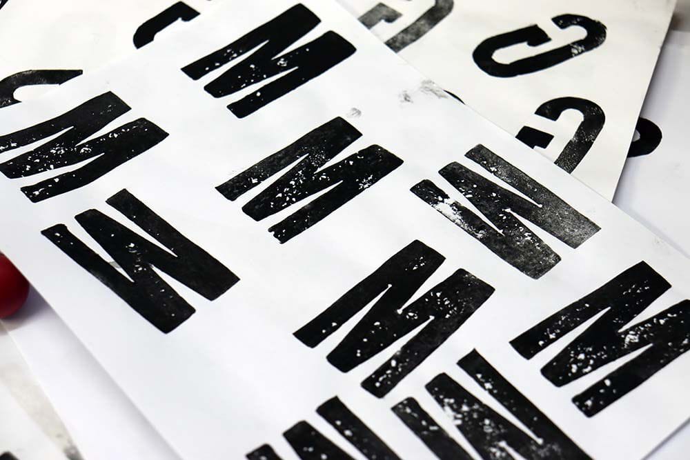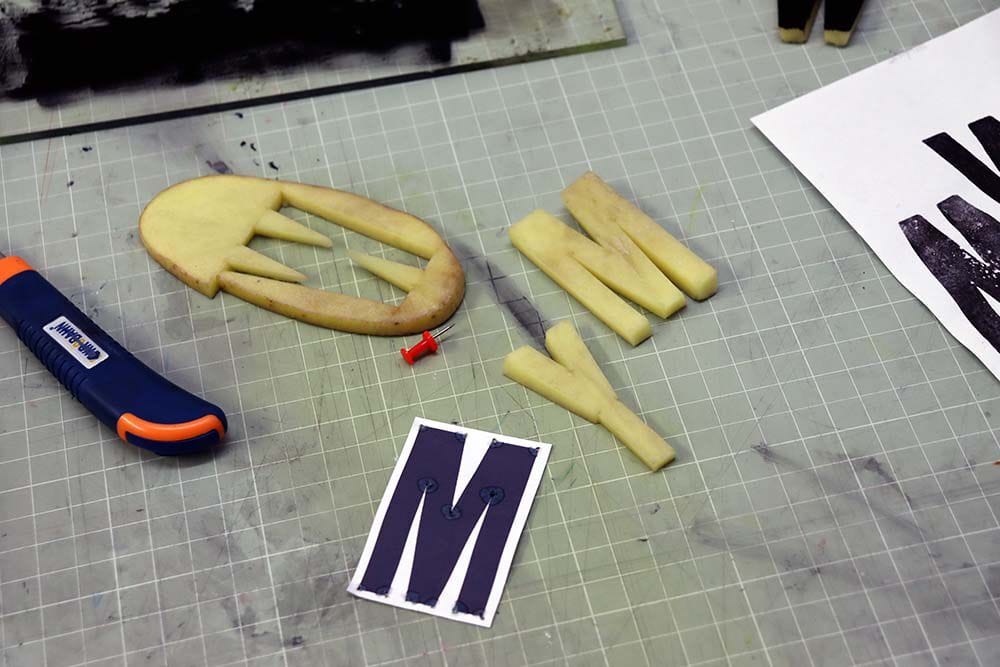 Potato printed type by Will Mower